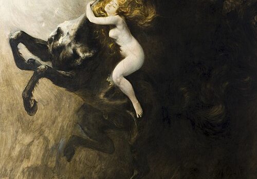 Szał uniesień Władysława Podkowińskiego (1894, olej na płótnie, 310 x 270 cm, Muzeum Narodowe w Krakowie) to jeden z najbardziej znanych polskich obrazów, uznawany za pierwsze dzieło symbolistyczne w naszym malarstwie, a równocześnie płótno oddziałujące na odbiorcę niekonwencjonalnym w epoce Młodej Polski ujęciem erotycznego tematu. Dzieło wpisuje się w „zmysłocentryczną” […]