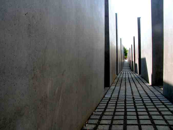 Gigantyczny w skali przestrzenny pomnik berliński (przeciwpomnik – countermonument) ma formę regularnej geometrycznej siatki naśladującej „ulice”, gdzie na pochylonej i pofałdowanej brukowanej powierzchni ustawiono 2 711 czarnych bloków o zróżnicowanej wysokości, tworzących labirynt, wewnątrz którego widz poddany zostaje bardzo mocnym fizycznym doznaniom: osaczenia, zagubienia, samotności, lęku i niepewności.
