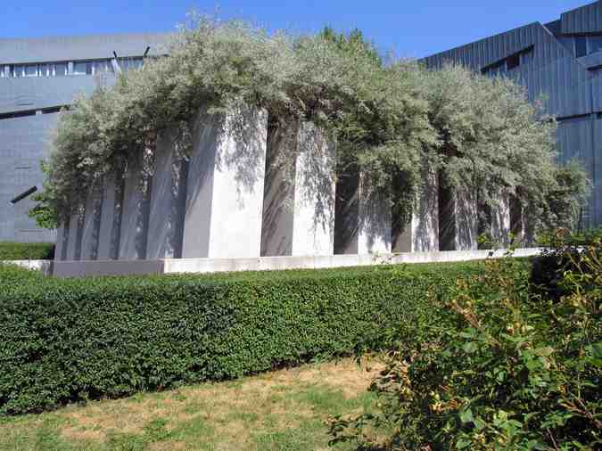 Przestrzeń ta jest powiązana ideowo, formalnie i wizualnie z Ogrodem Pamięci przy Muzeum Holokaustu, stanowiąc wspólnie wizualizację „filozofii wygnania” i „pozbawionych praw” – podstawy projektu Muzeum pomyślanego jako Pustka, ujawniona w Nowym Berlinie jako „architektura pomnikowa” oparta na antyredempcyjności (czynienie pamięci widoczną). Formę architektoniczną Muzeum, wynikłą ze związku bryły i Pustki, odczytuje się jako ten rodzaj architektonicznego dyskursu, który oferuje „nową” epistemologię historii, odkrywa nieznane i/lub wyparte aspekty przeszłości (Holocaust), i poprzez narrację architektoniczną proponuje nowe, perswazyjnie metody pokazywania przeszłości. Jedną z czterech osi budynku Muzeum jest „oś wygnania” wyprowadzająca widzów do Ogrodu Wygnania – przestrzeni, na której ustawiono 49 wielkich pochylonych słupów-macew. Błądzący wśród nich widz poddany jest bardzo silnym bodźcom fizycznym: pochylone trapy, na których stoją słupy, wywołują uczucie niepewności i strachu, odwołując się wprost fizycznie do symboliki wygnania.