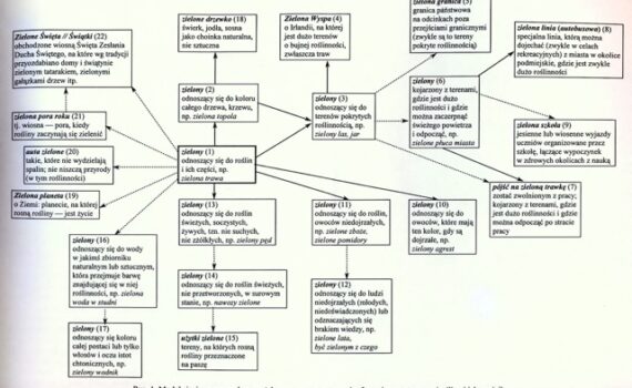 Rekonstrukcja struktury semantycznej nazwy barwy wymaga uwzględnienia wielu różnych czynników, m.in. stabilnego jądra pojęciowego nazwy, związanego z referencją prototypową danego koloru; rozmaitych znaczeń powstałych wskutek przesunięć o charakterze metonimicznym i metaforycznym; wreszcie – utrwalonej językowo i ujawniającej się w użyciach tekstowych symboliki kulturowej. W tym miejscu chciałabym pokrótce przedstawić dwie […]