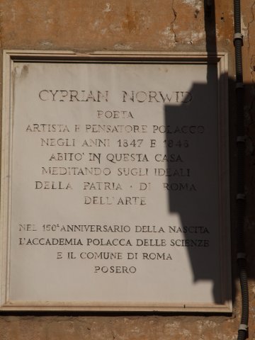 Tablica pamiątkowa ku czci Norwida na domu przy via Sistina w Rzymie