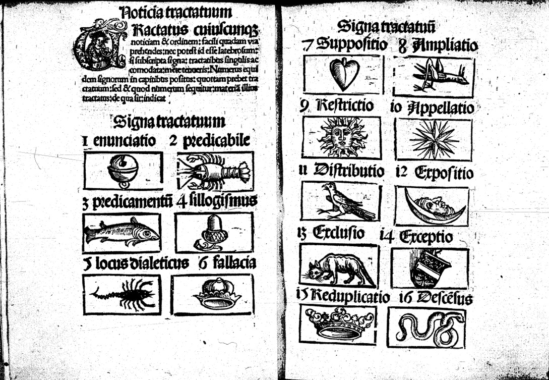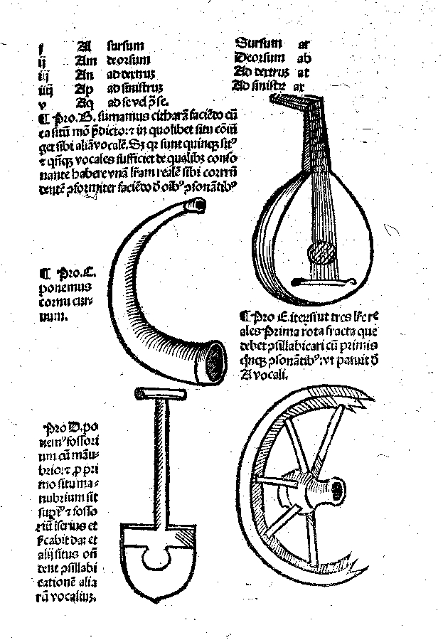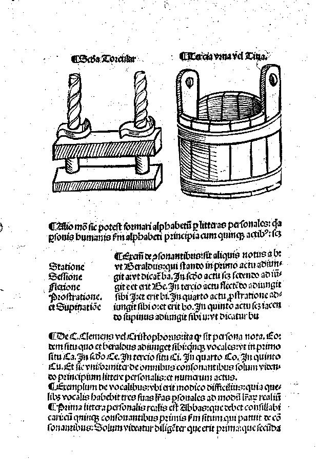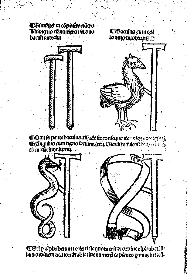Alfabet mnemoniczny z dzieła Jacobusa Publiciusa, drzeworyt negatywowy, 1485 r.