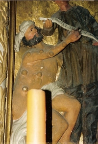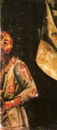Trędowaty żebrak, predella tryptyku z Warty ok. 1515 r.