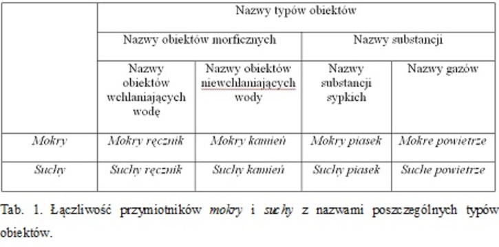 Łączliwość przymiotników mokry i suchy