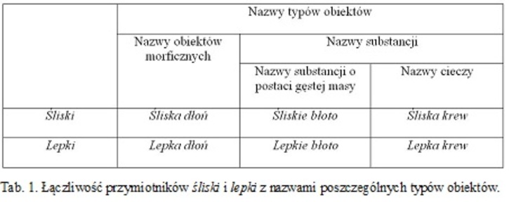 Łączliwość przymiotników śliski i lepki